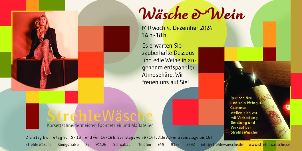 Wäsche & Wein Es erwarten Sie zauberhafte Dessous und edle Weine in angenehm entspannter Atmosphäre. Wir freuen uns auf Sie! Ranuccio Neri und sein Weingut [...]